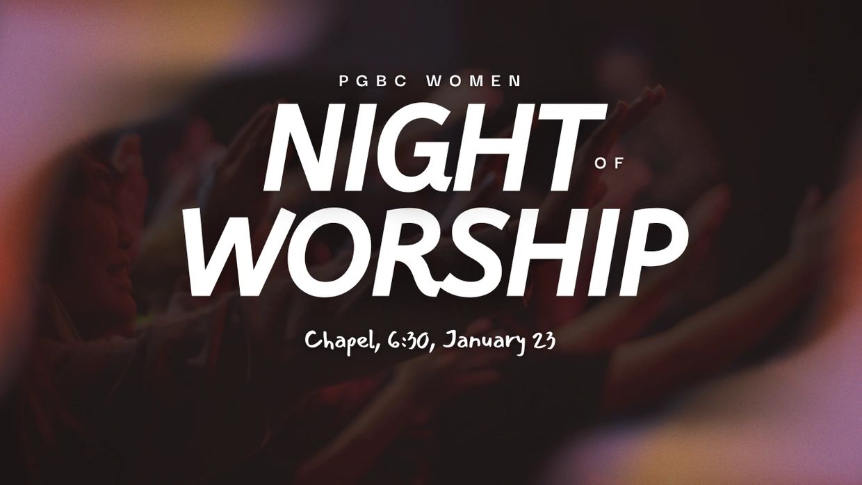 Join the women of PGBC for an intimate night of worship in the Chapel, January 23rd at 6:30pm. It will be a night for prayer and worship and connecting with Jesus. Join us!